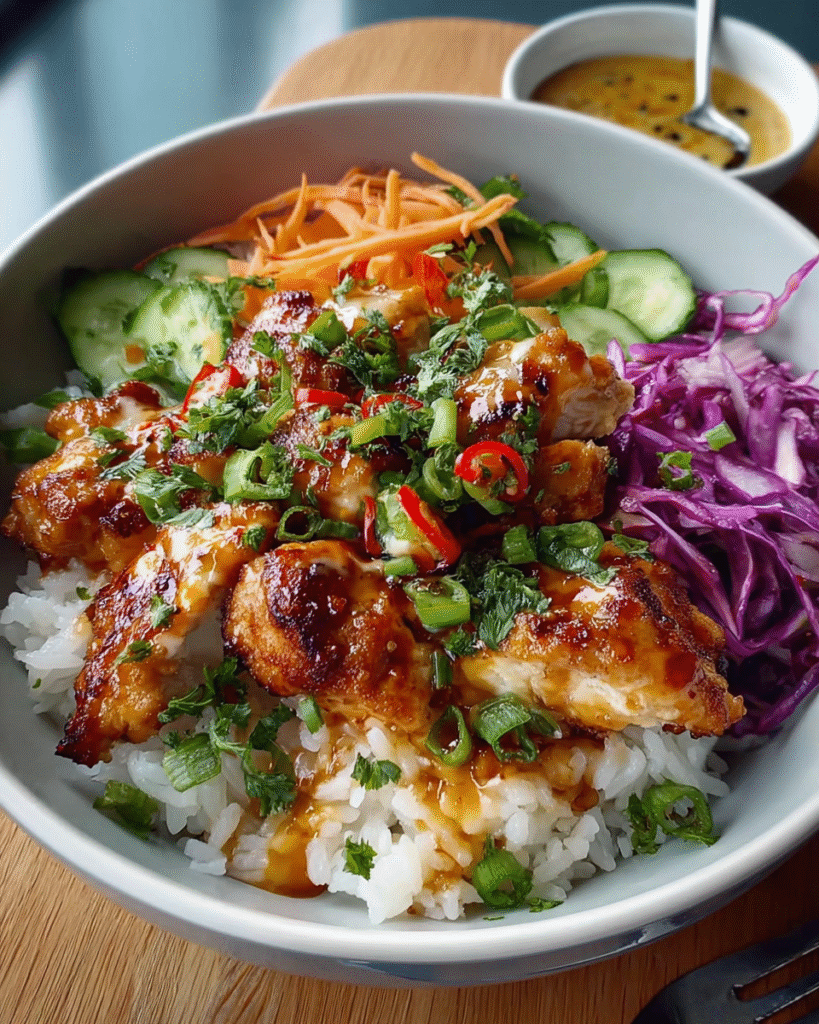 This bowl-style meal has become a staple in kitchens everywhere because it balances flavor, texture, and nutrition. Each bite delivers something different — the creaminess of the sauce, the warmth of the rice, the crunch of fresh vegetables, and the juicy tenderness of chicken. It’s the kind of dish you’ll crave again and again.