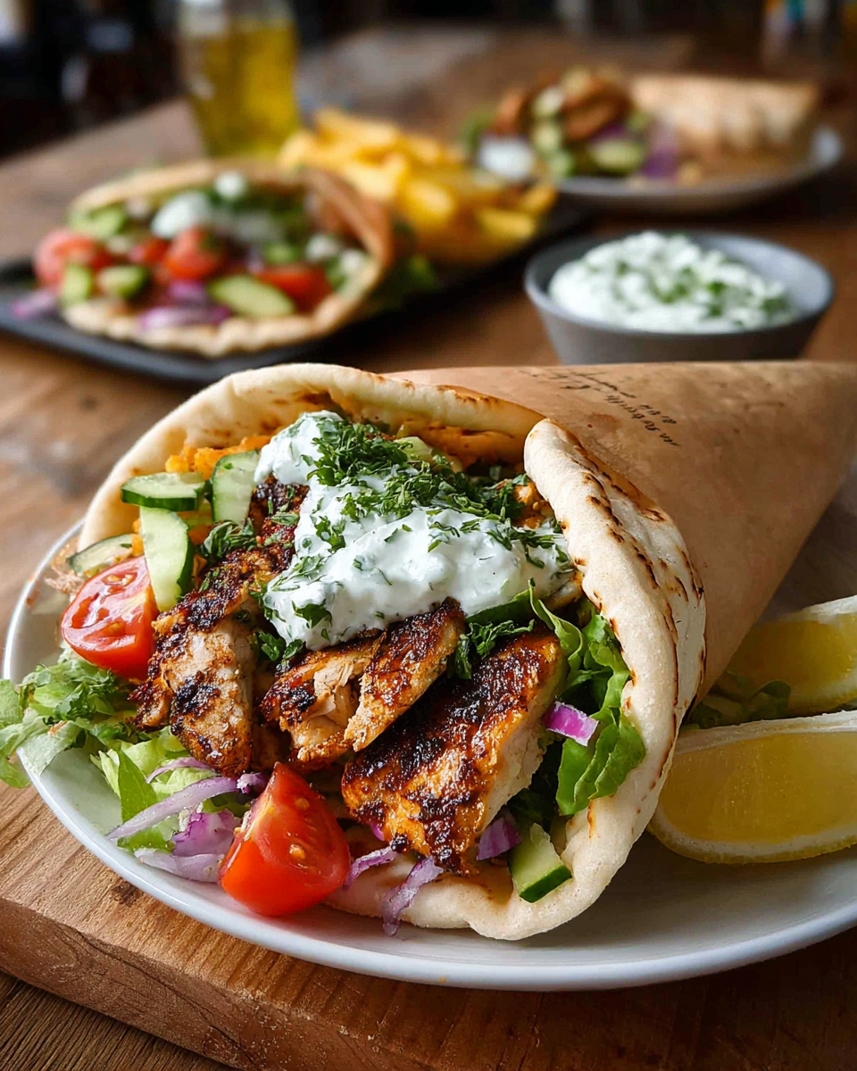 Grilled Chicken Gyro Wraps with Crisp Veggies & Creamy Yogurt Sauce